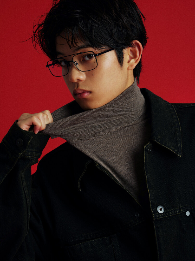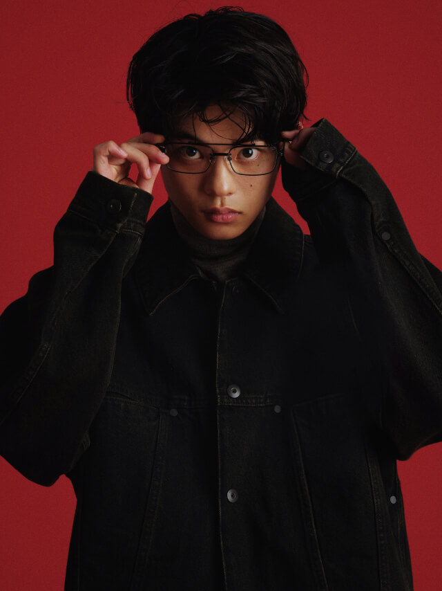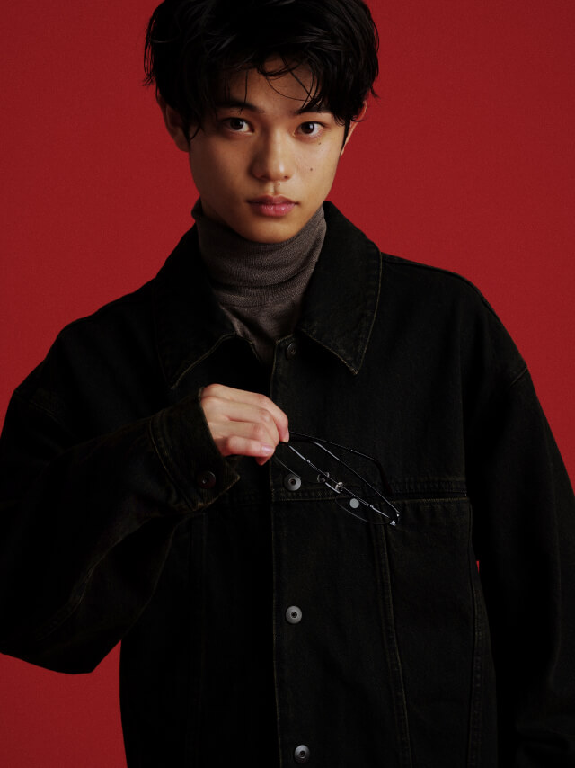 服を着るように、アイウエアをかけるブラックデニムのセットアップは同色で合わせたブラックのダブルブリッジで気取ってみたり