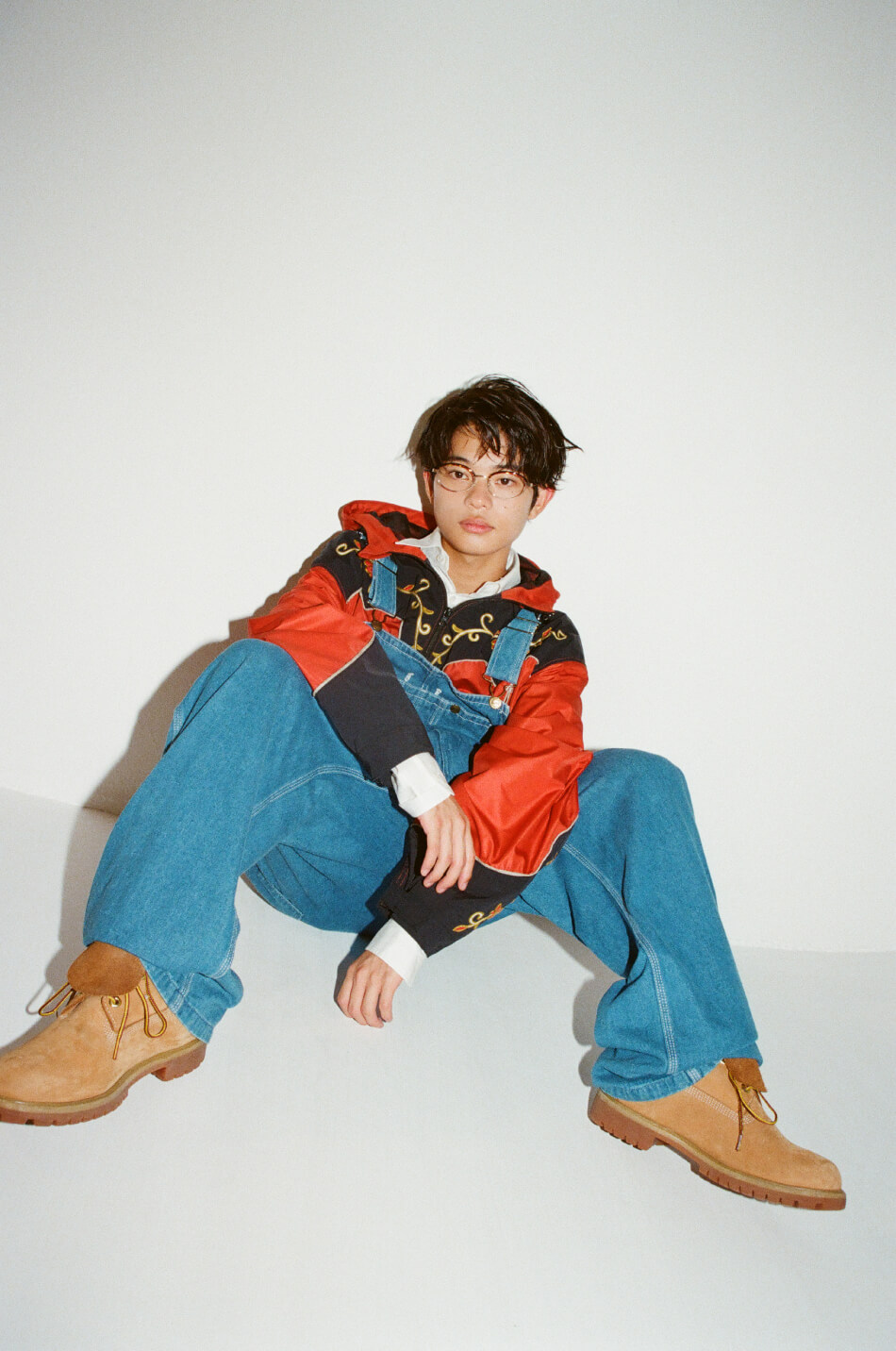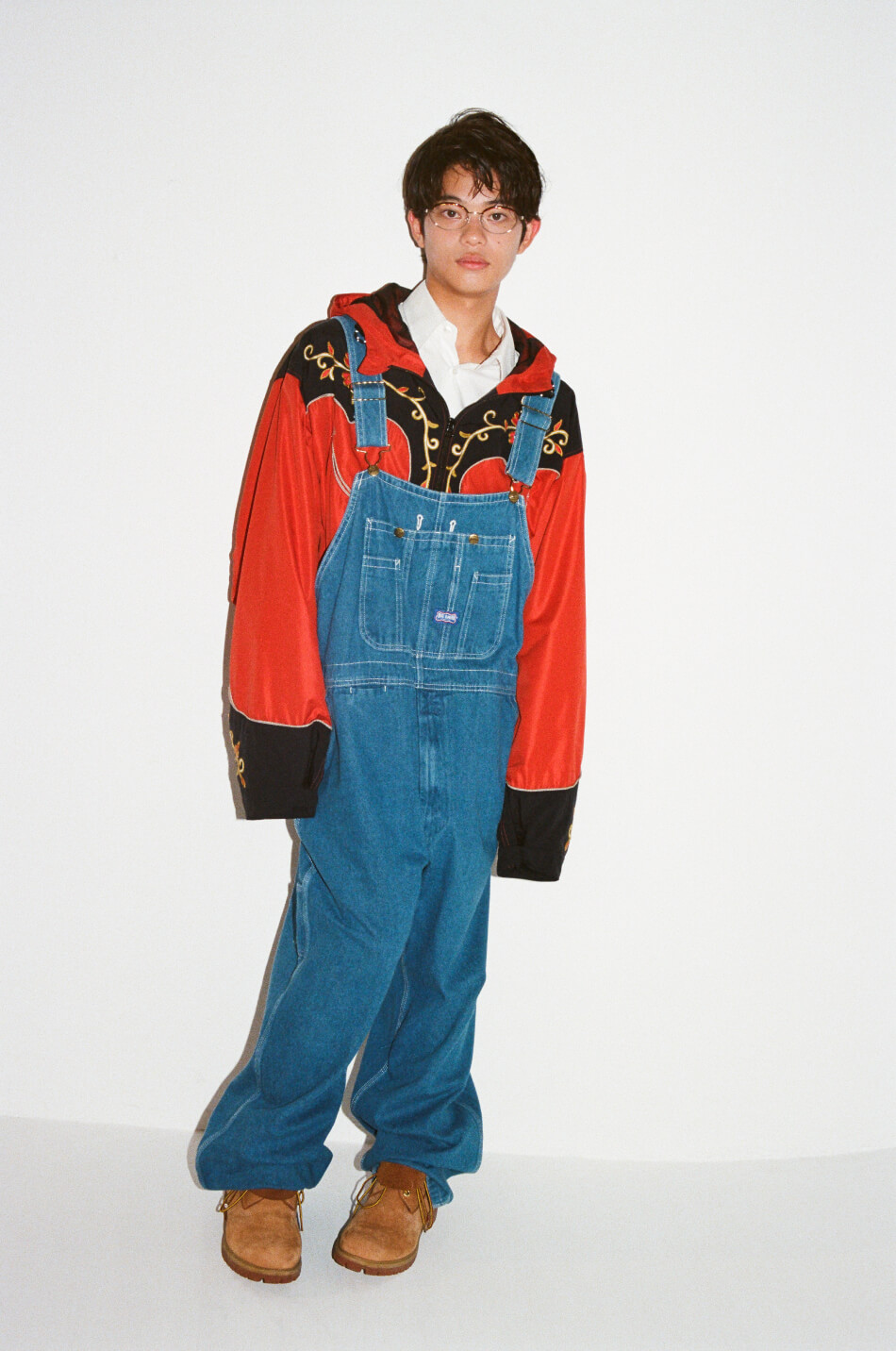 オーバーオールのミックスコーディネートにはオーバルのサーモントで、もっと個性的に着飾れる